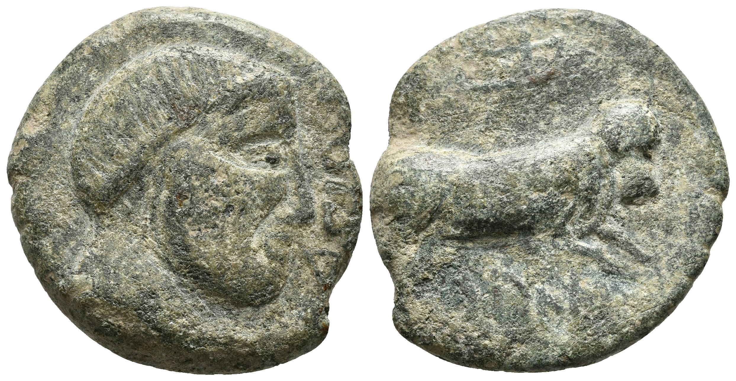 English ASIDO. As. 50 Fine Medina Sidonia (Cádiz). A/ Male head on the right, in front external legend ASIDO. R/ Bull on the right, above mark, below Libyan-Phoenician inscription 'SDN. FAB-153. Ae. 14.46g. Good Fine. Rare.