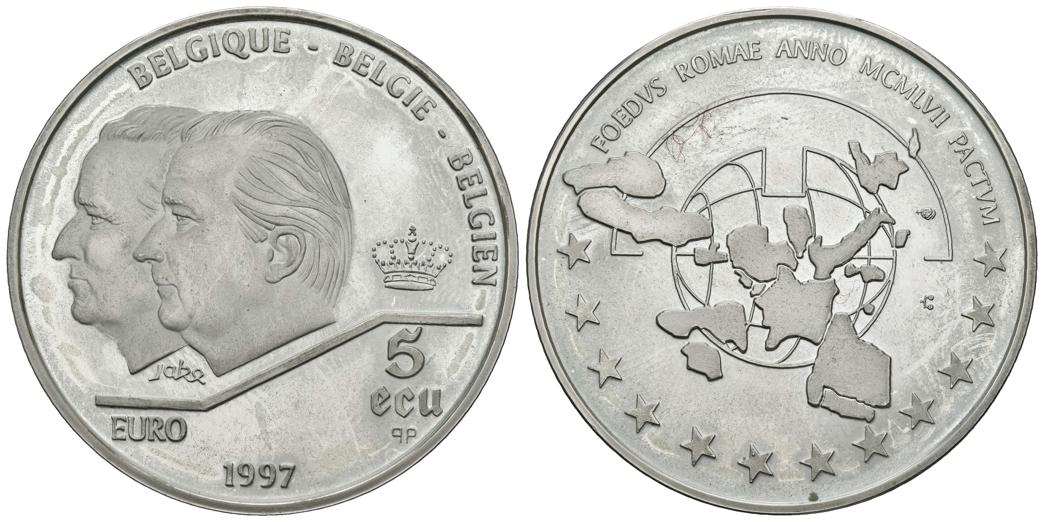 BELGIUM. 5 Ecu. Treaty of Rome. 1993 (Ar. 23.01g/37.00mm). Proof