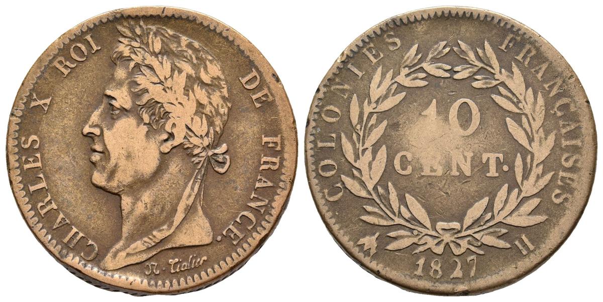 FRANCE. Carlos X. 10 Centimes. 1827. La Rochelle H. Km#11.2. oh 20.74g Almost Very Fine.