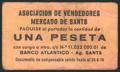 BARCELONA (1978). 1 Peseta voucher from the Sants Market Vendors Association. Very Fine.