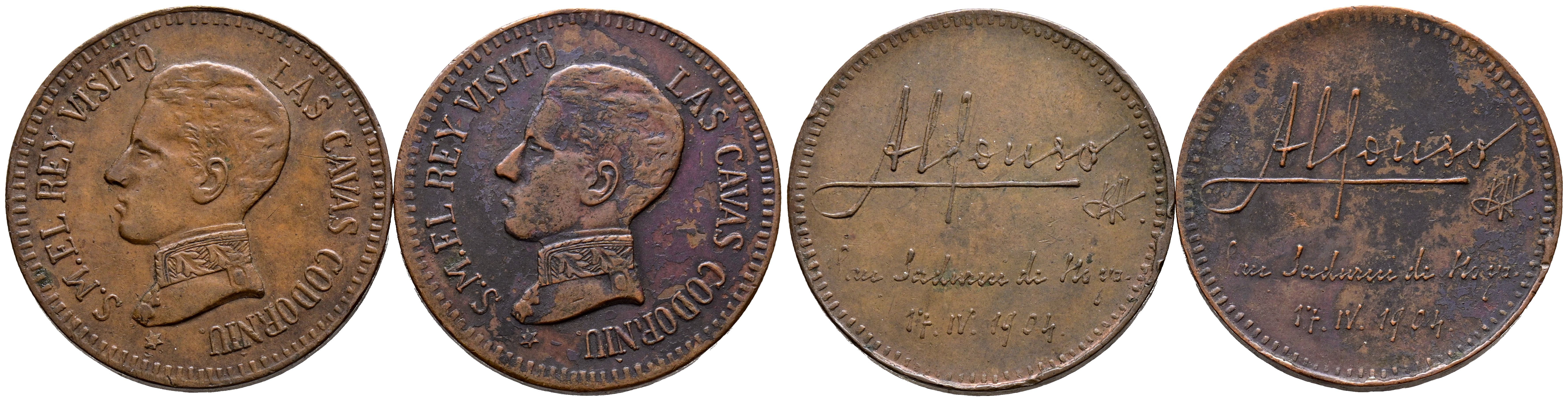 English BARCELONA. Set of two medals from the visit of Alfonso XIII to the Cavas Codorniú (Ae 6.1g / 25 mm). Very Fine/ Good Very Fine.