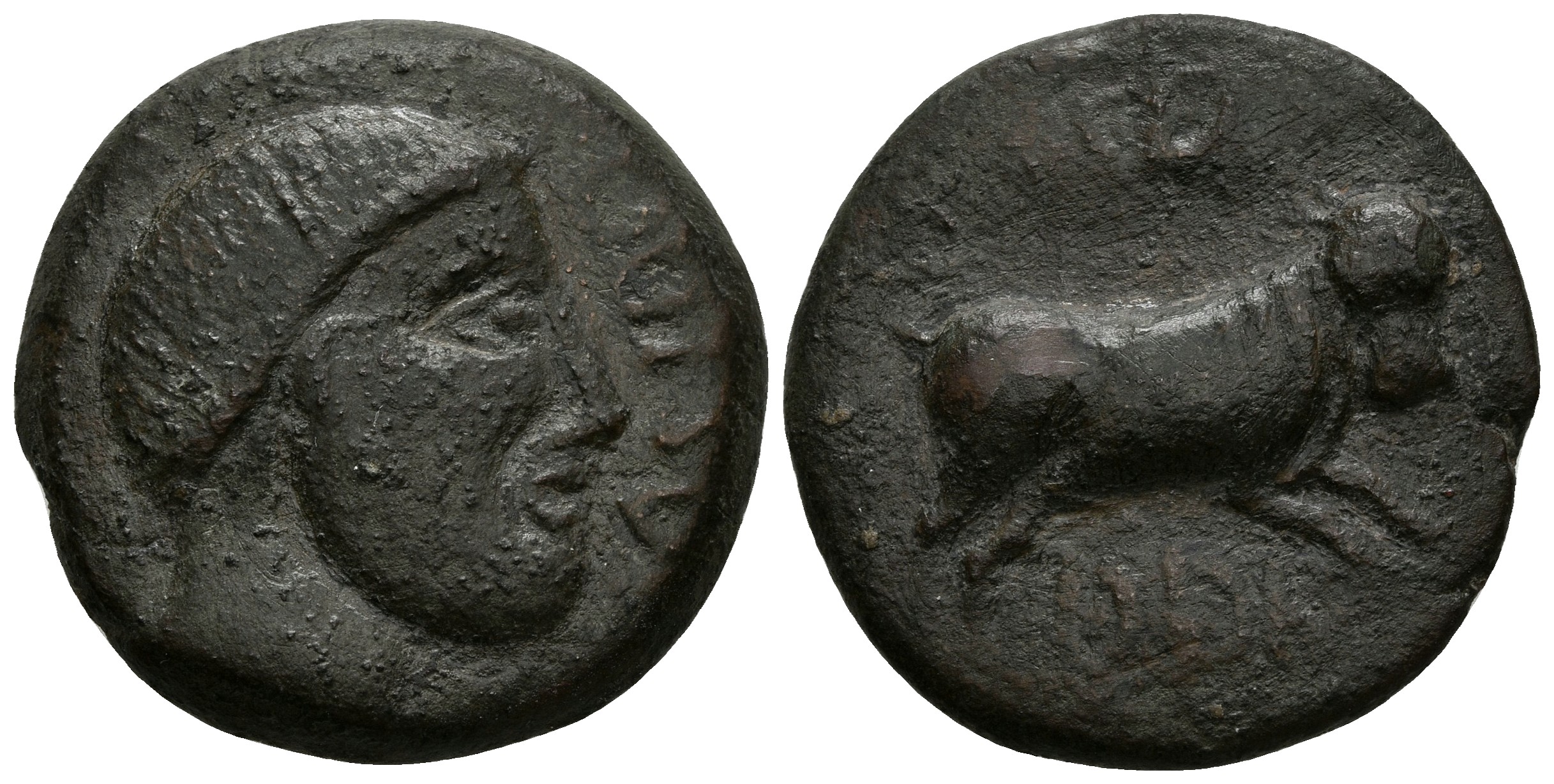 ASIDO. As. 50 Fine Medina Sidonia (Cádiz). A/ Male head on the right, in front external legend ASIDO. R/ Bull on the right, above mark, below Libyan-Phoenician inscription 'SDN. FAB-153. Ae. 14.16g. VF. Rare.