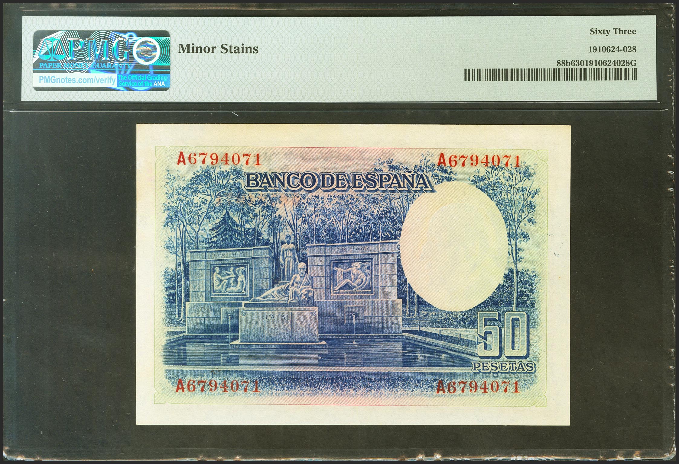50 pesetas. July 22, 1935. Series A. (Edifil: 366a, Pick: 88b). little spots Uncirculated. PMG63 package.