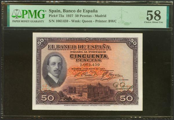 Los italianos presentaron varios proyectos, entre los cuales se encontraba este ejemplar de 50 pesetas con el retrato de Tirso de Molina basado en un óleo que se encuentra actualmente en la Colección Histórico-Artística de la Biblioteca Nacional de España. Estilísticamente este boceto, presentado ya en una concepción muy completa, encaja mejor con lo que finalmente se entregó para 25, 100, 500 y 1000 pesetas.