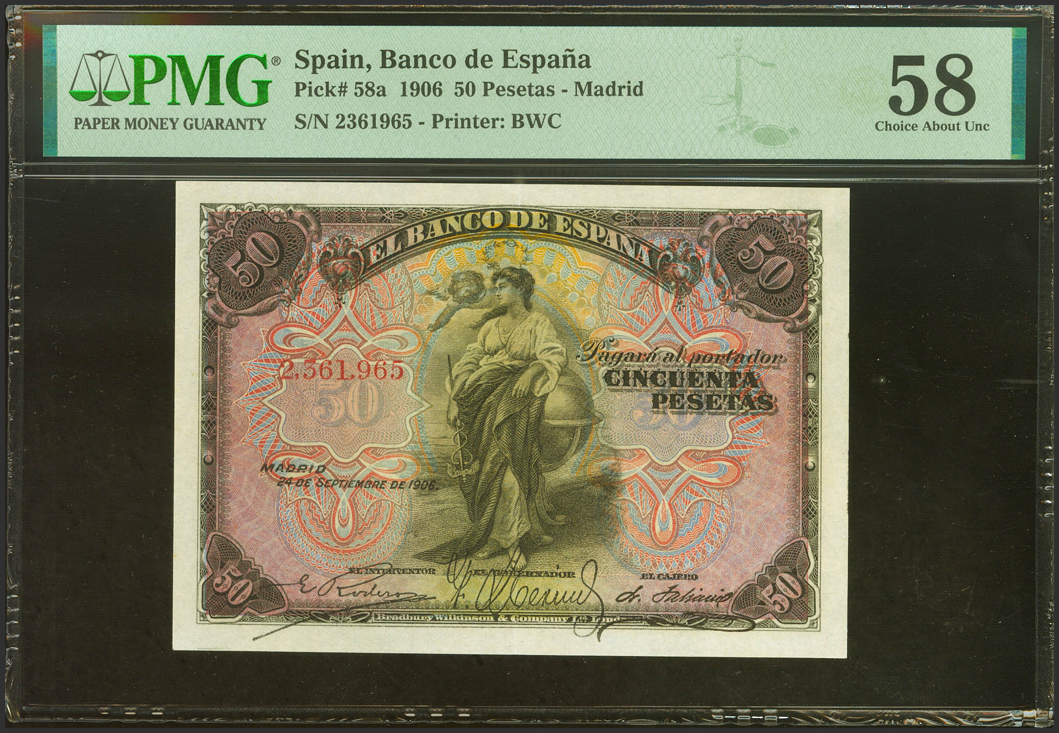 50 Pesetas. 24 de Septiembre de 1906. Sin serie. (Edifil 2023: 315, Pick: 58a). Inusual en esta calidad. EBC++. Encapsulado PMG58.