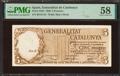 5 Pesetas. 25 de Septiembre de 1936. Generalitat de Catalunya. Serie B. (Edifil 2023: 373, Pick: 592). Raro en esta calidad. EBC++. Encapsulado PMG58 (para hacernos idea de la rareza, a fecha 1 de Marzo de 2024, este billete es el quinto mejor calificado junto a otros dos billetes en PMG).
