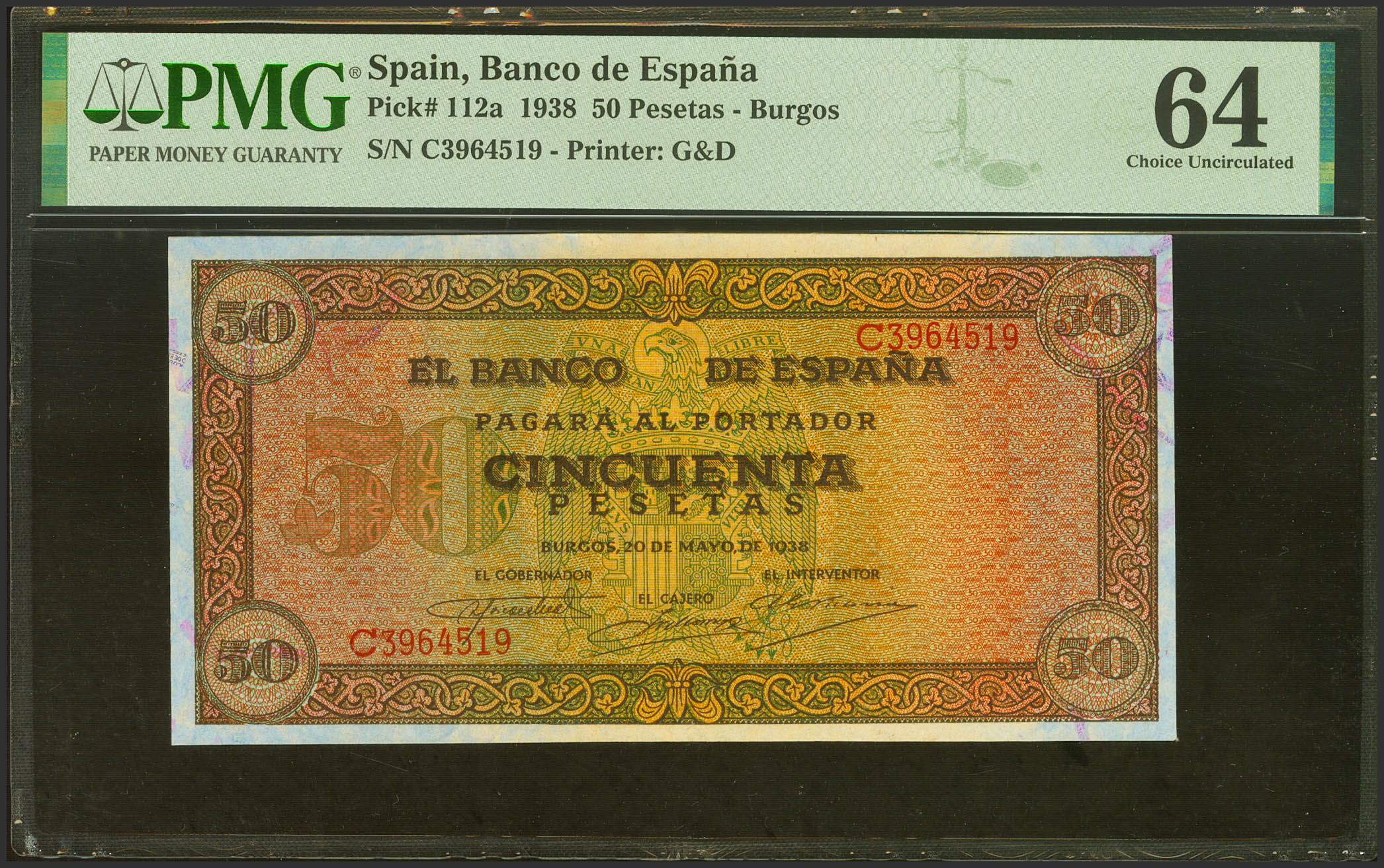 50 Pesetas. 20 de Mayo de 1938. Serie C. (Edifil 2021: 431a, Pick: 112a). Inusual. SC. Encapsulado PMG64.