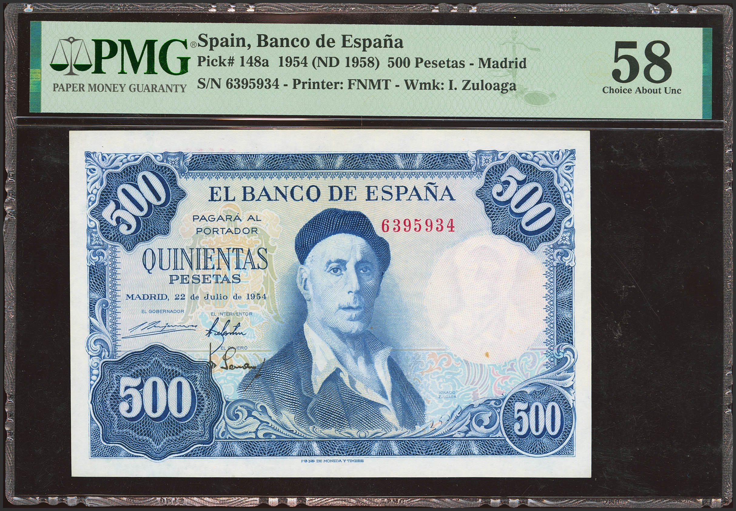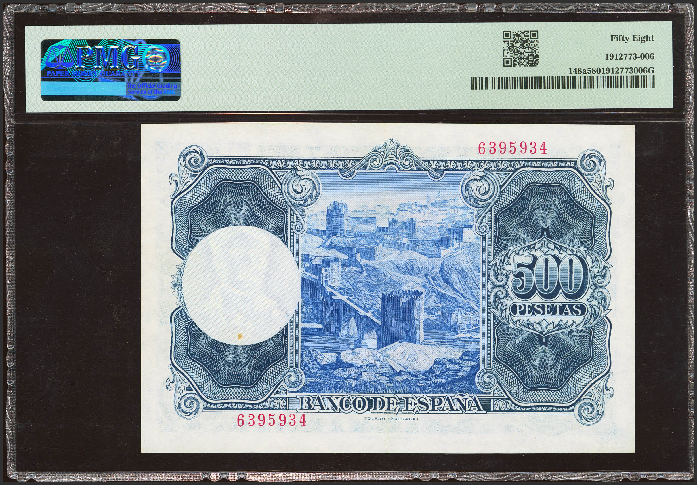 500 Pesetas. 22 de Julio de 1954. Sin serie. (Edifil 2021 468, Pick: 148a). EBC++. Encapsulado PMG58.