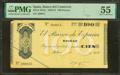 100 Pesetas. 1936. Sin serie. Sucursal de Bilbao y antefirma Banco del Comercio. (Edifil 2023: 371c, Pick: S554c). Raro en esta excepcional calidad. EBC+. Encapsulado PMG55 (corner tip missing, minor stains).