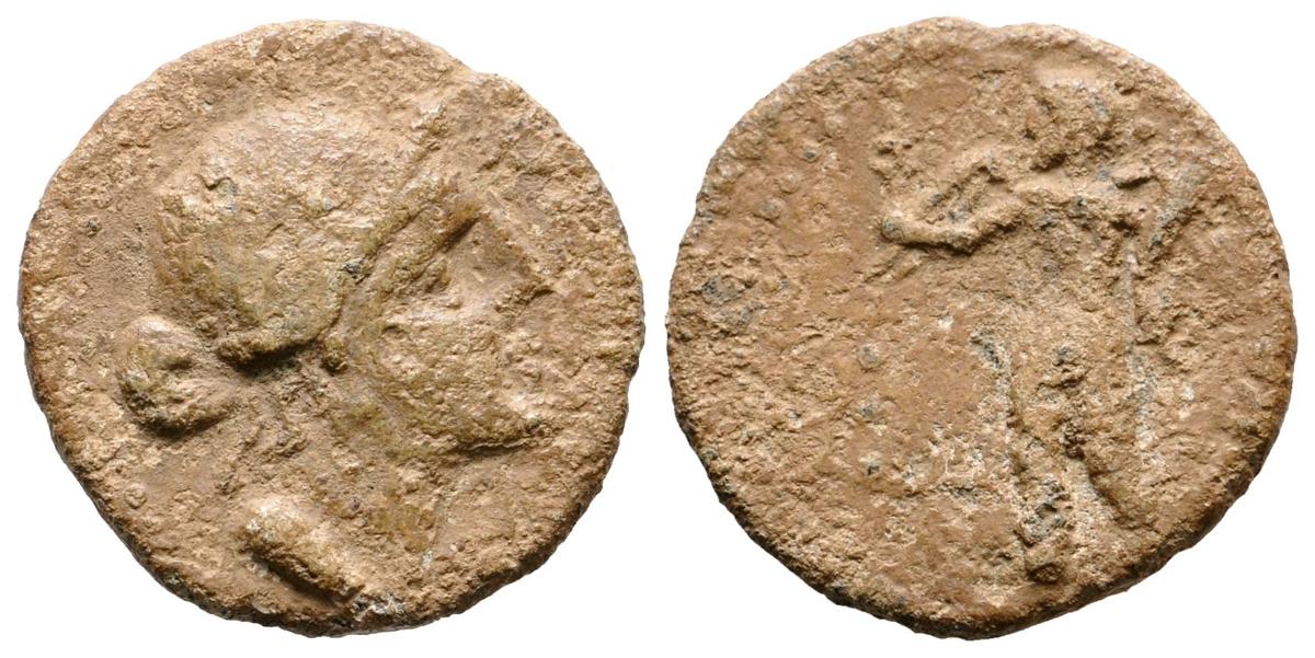 CORDUBA. Plomo tipo Semis. 50 a.C. Colonia Patricia (Córdoba). A/ Cabeza de Venus a derecha. R/ Cupido con cornucopia a izquierda, detrás CORDVBA, delante tres puntos. FAB-no cita. Pb. 3,74g. MBC. Escasa.