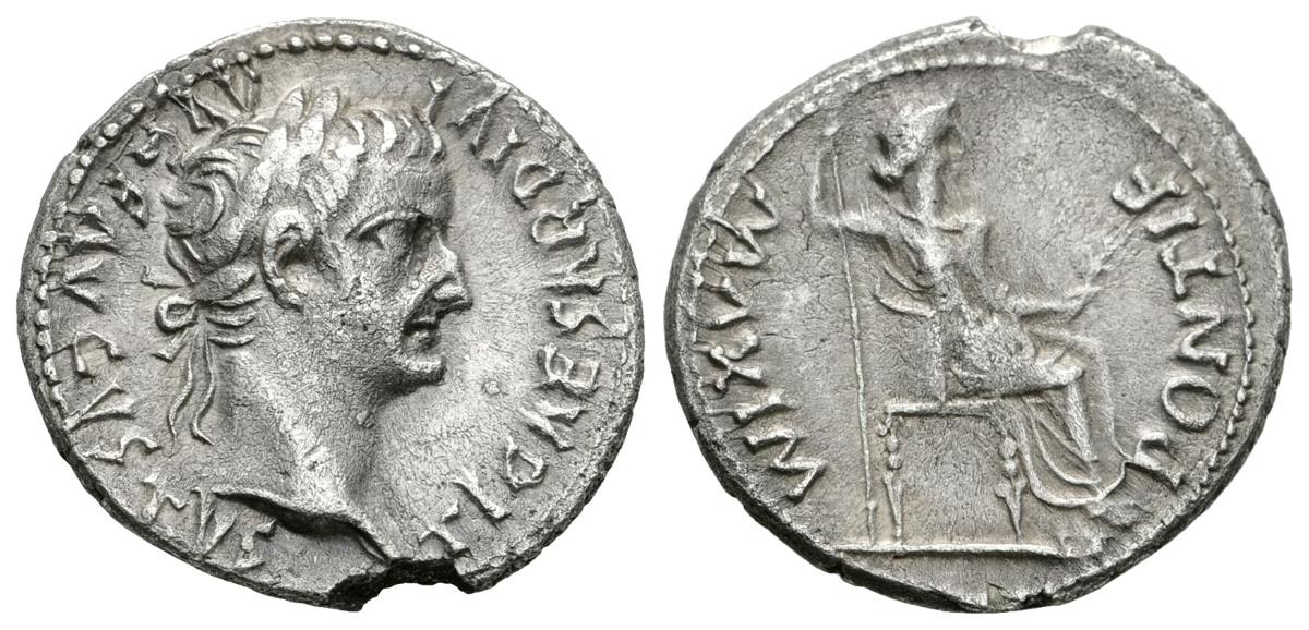 TIBERIO. Denario. 14-37 d.C. Roma. A/ Busto laureado a derecha TI CAESAR DIVI AVG F AVGVSTVS. R/ Livia sentada a derecha con cetro y palma. PONTIF MAXIM. RIC 30. Ar. 3,66g. EBC-.