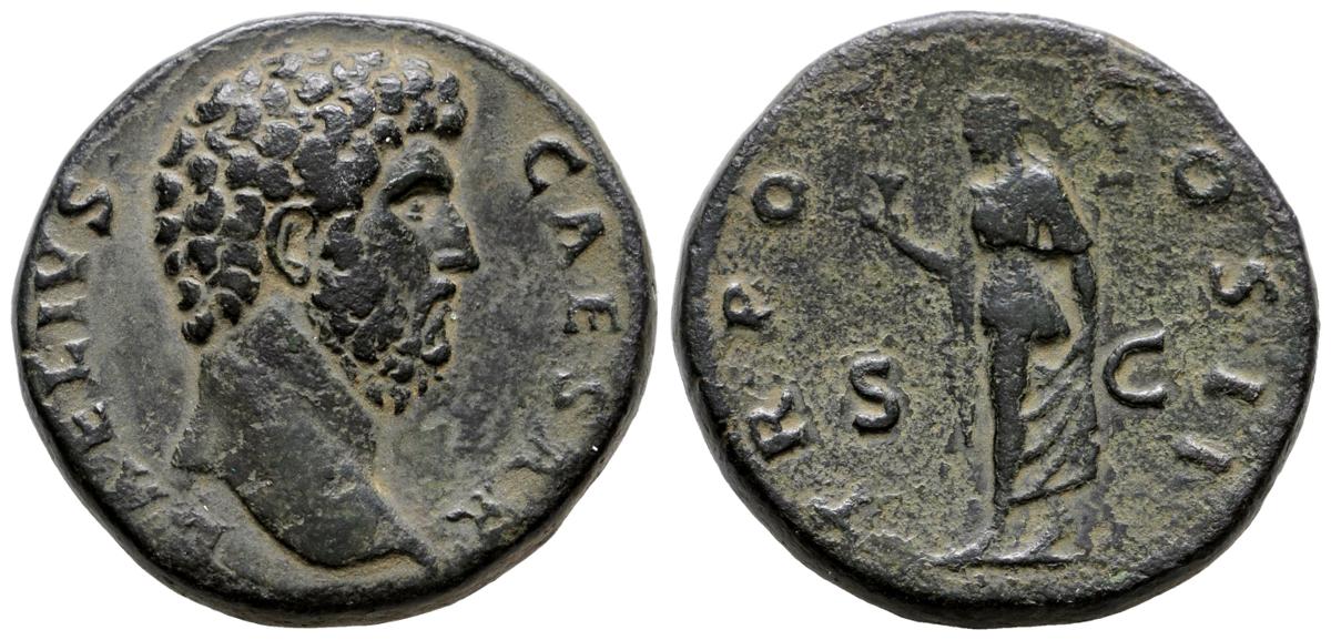AELIO. Sestercio. 136-138 d.C. Roma. A/ Cabeza desnuda a derecha. AELIVS CAESAR. R/ Spes avanzando a izquierda con flor y sujetandose el vestido. TR POT COS II / S-C. RIC 1055 (Hadrian). Ae. 27,02g. Campos suavizados en anverso. MBC+/MBC-.
