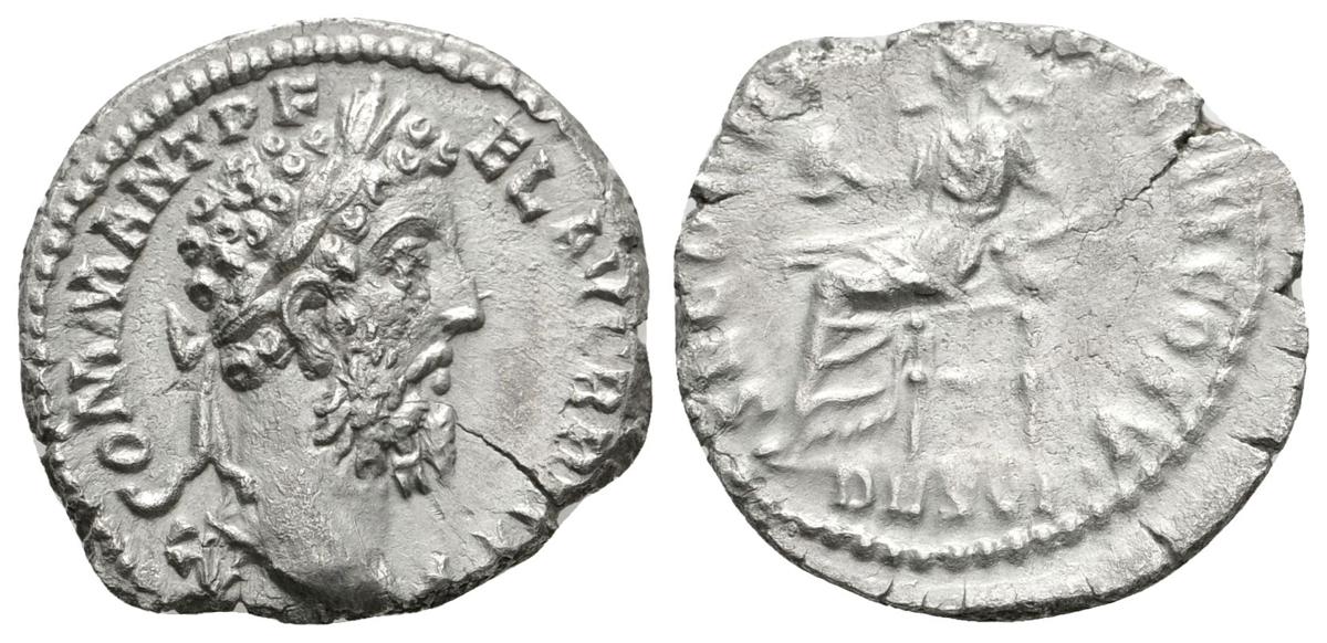 COMODO. Denario. 189 d.C. Roma. A/ Busto laureado a derecha. M COMM ANT P FEL AVG BRIT. R/ Securitas sedente a izquierda portando globo. SECVR ORB P M TR P XIIII COS V. DES VI. RIC III 190. Ar. 3,27g. Pequeña grieta. MBC+/EBC-.