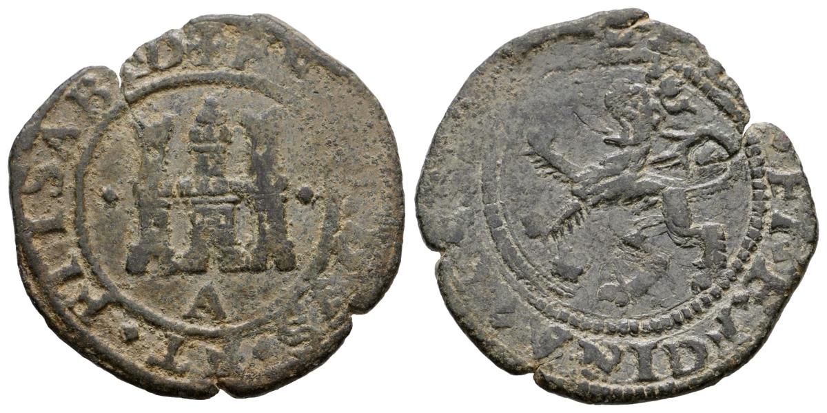 REYES CATOLICOS. 2 Maravedís. Coruña A (venera). Cal-550 var. Ae. 3,71g. MBC.
