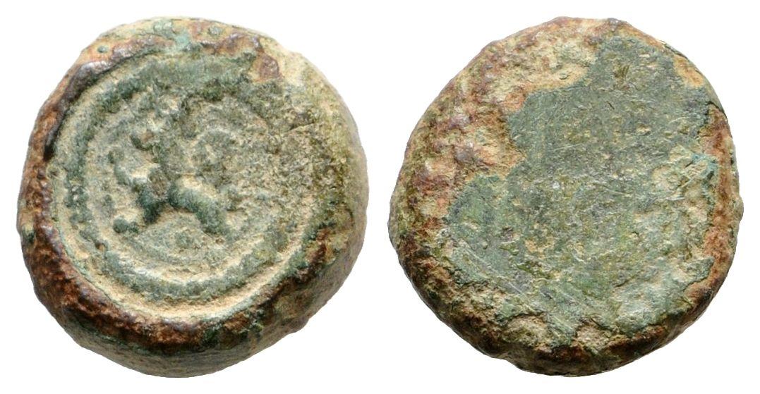 REYES CATOLICOS. Ponderal de 1/2 Castellano ó 1/4 de Excelente. T sobre león. Ordenamiento Valencia 1488. Ae. 1,81g. MBC-.