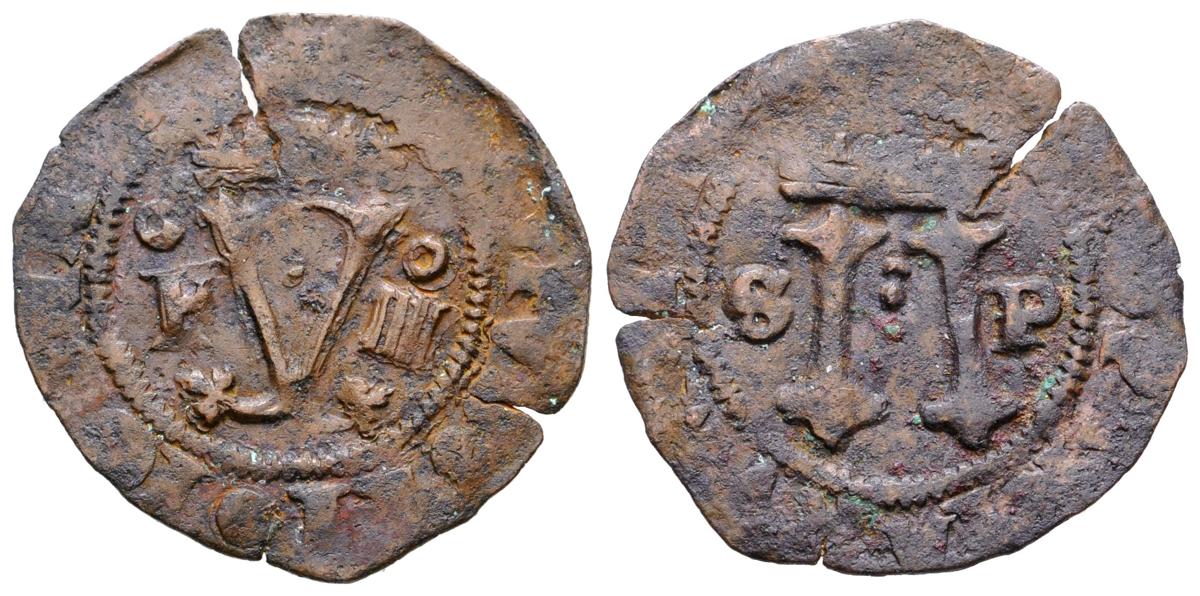 JUANA Y CARLOS. 4 Maravedís. S/D. Santo Domingo. Cal-208. Ae. 2,24g. MBC.