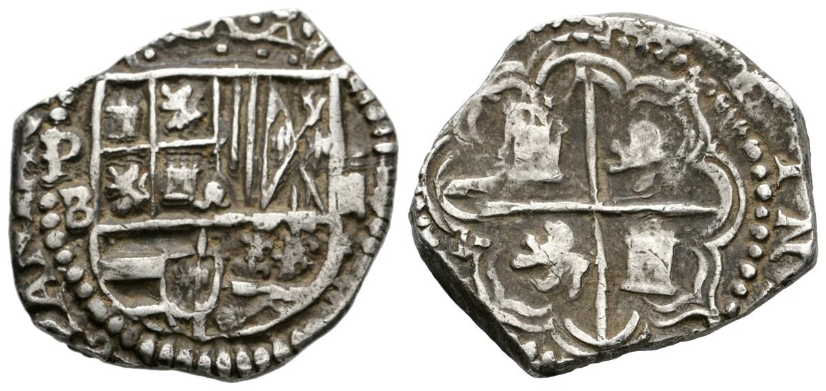 FELIPE II. 2 Reales. S/D. Potosí B. Cal-509. Ar. 7,04g. MBC.