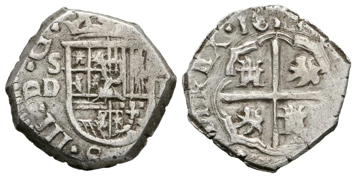 FELIPE III. 1 Real. ¿1612?. Sevilla D. Cal-No catalogada. Ar. 3,41g. MBC+. Muy rara.