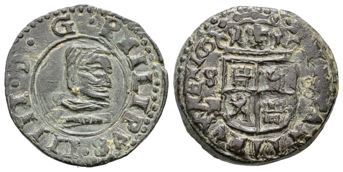 FELIPE IV. 8 Maravedís. 166X. Sevilla R. Falsa de época. J.S. página 475. Ae. 3,25g. MBC+.