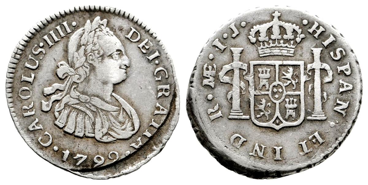 CARLOS IV. 1/2 Real. 1792. Lima IJ. Segundo busto propio. Cal-1246. Ar. 1,68g. Fallo de acuñación en anverso. MBC. Rara.