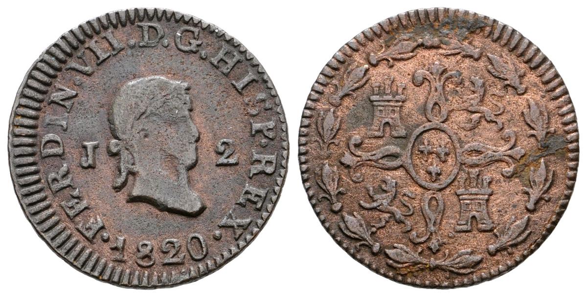 FERNANDO VII. 2 Maravedís. 1820. Jubia. Cal-1587. Ae. 2,13g. MBC-.