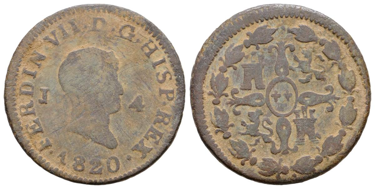 FERNANDO VII. 4 Maravedís. 1820. Jubia J. Cal-1573. Ae. 4,78g. MBC-. Muy rara.