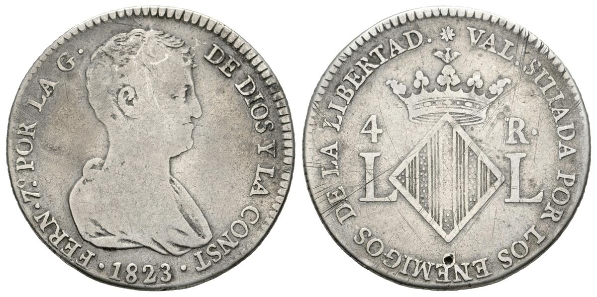FERNANDO VII. 4 Reales. 1823. Valencia. Cal-1061. Ar. 5,59g. BC/BC+.