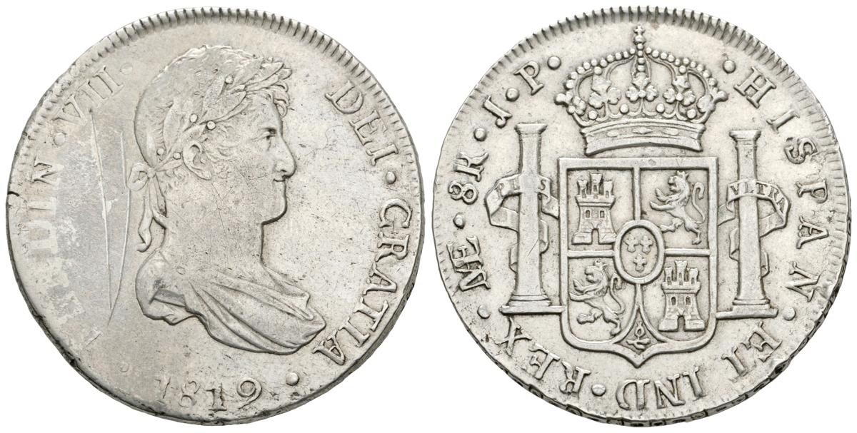 FERNANDO VII. 8 Reales. 1819. Lima JP. Cal-487. Ar. 26,94g. Dos rayas en anverso. MBC.