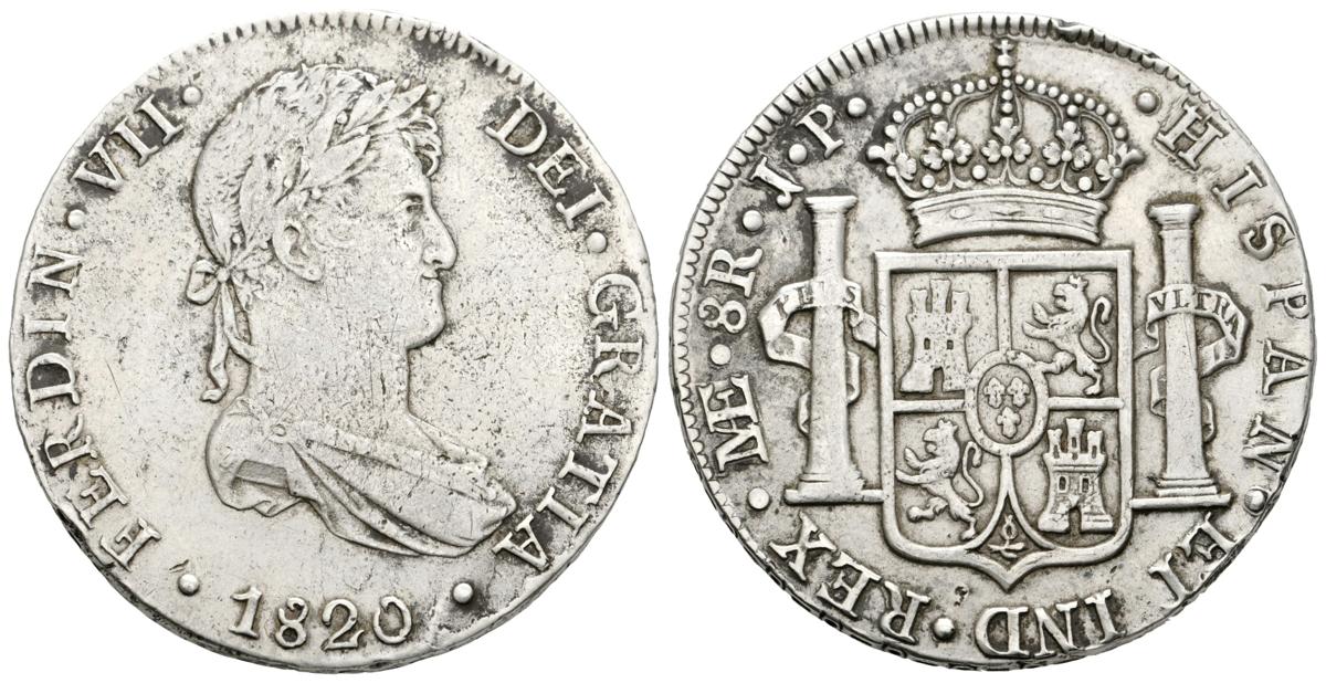FERNANDO VII. 8 Reales. 1820. Lima JP. Cal-488. Ar. 26,77g. Limpiada. MBC.
