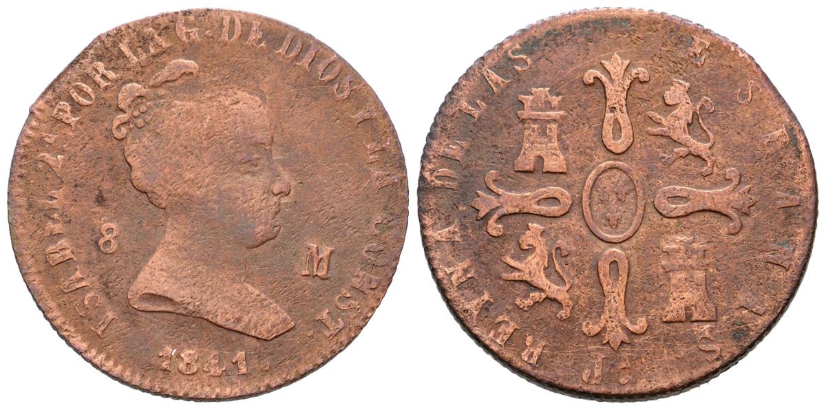 ISABEL II. 8 Maravedís. 1841. Jubia J. Falsa de época. Cal-479. Ae. 8,96g. BC+.