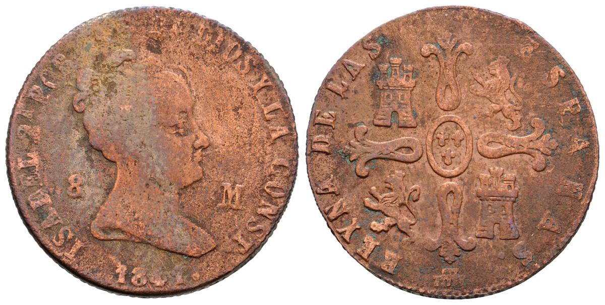 ISABEL II. 8 Maravedís. 1841. Segovia. Falsa de época. Cal-496. Ae. 8,75g. BC.