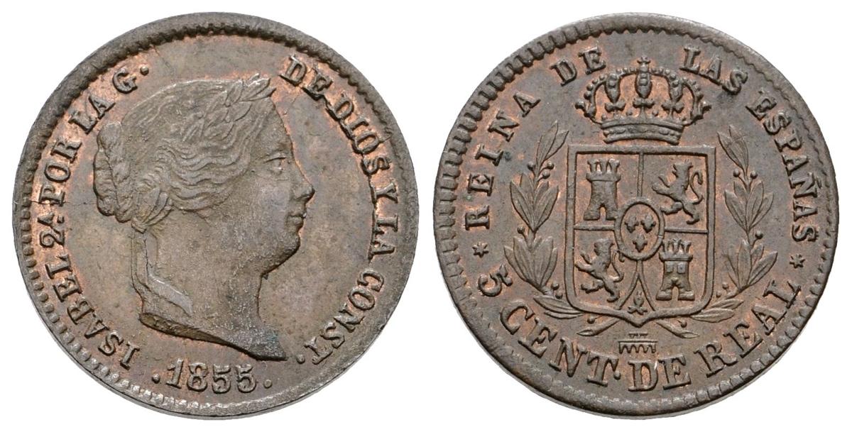 ISABEL II. 5 Céntimos de real. 1855. Segovia. Cal-612. Ae. 1,81g. EBC-.