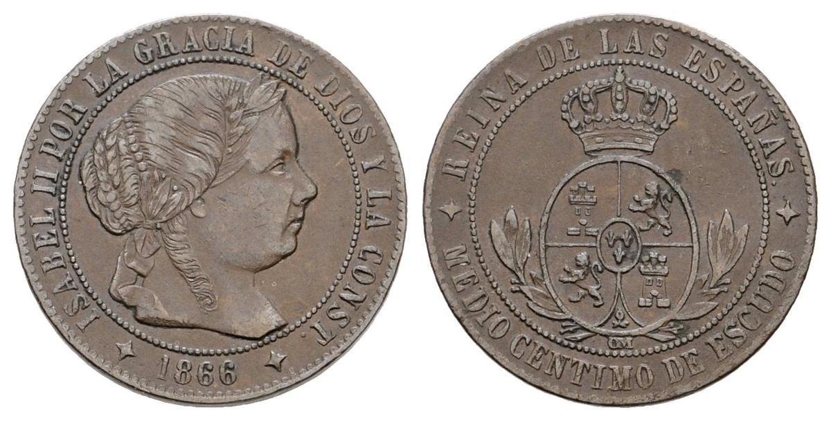 ISABEL II. ½ Céntimo de Escudo. 1866. Jubia OM. CAL-672. Ae. 1,21g. MBC+.
