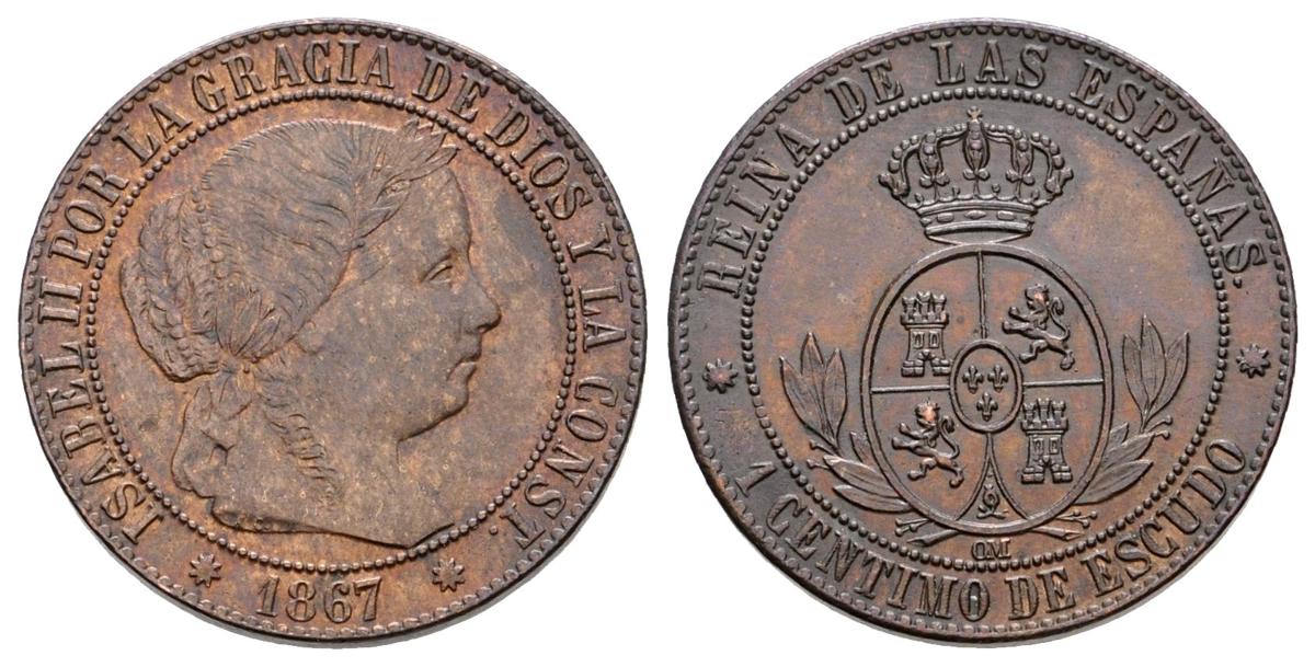 ISABEL II. 1 Céntimo de escudo. 1867. Barcelona OM. Cal-654. Ae. 2,45g. EBC-/EBC.