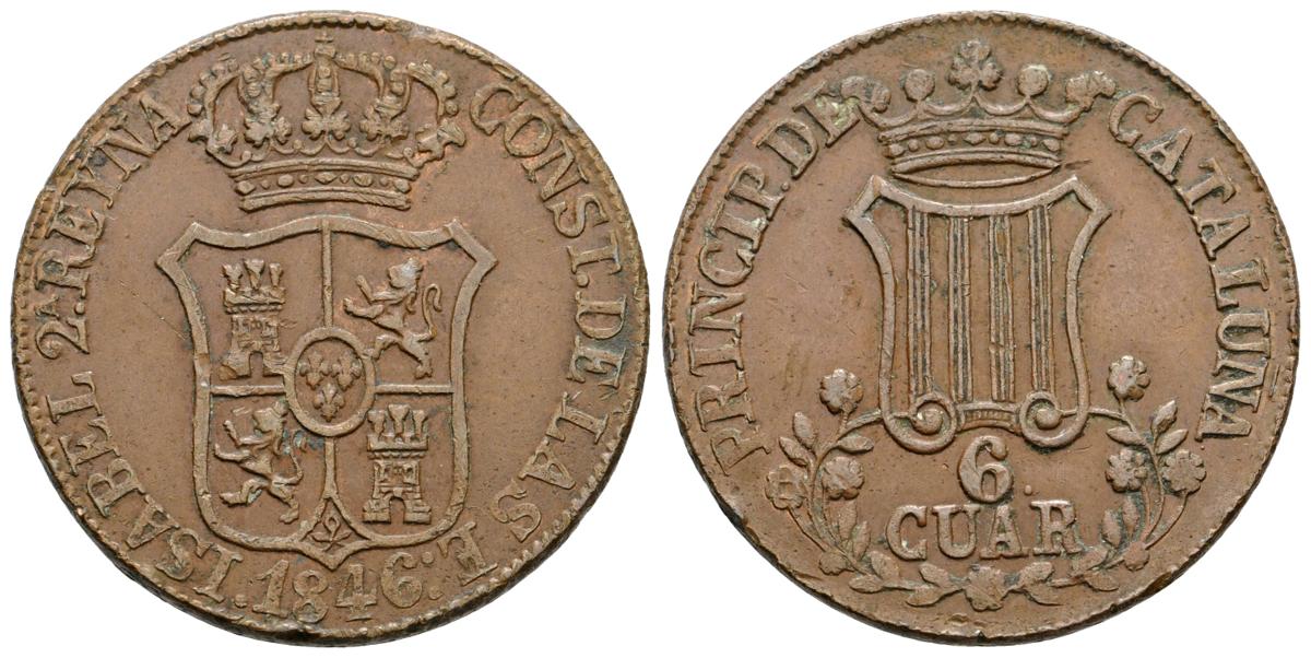 ISABEL II. 6 Cuartos. 1876. Barcelona. Flores de 7 pétalos. Cal-698. Ae. 14,42g. MBC-.
