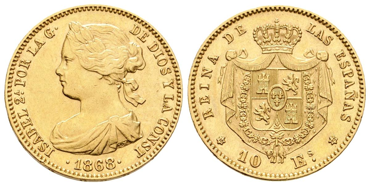 ISABEL II. 10 Escudos. 1868 *18-68. Madrid. Cal-47. Au. 8,39gr. EBC.
