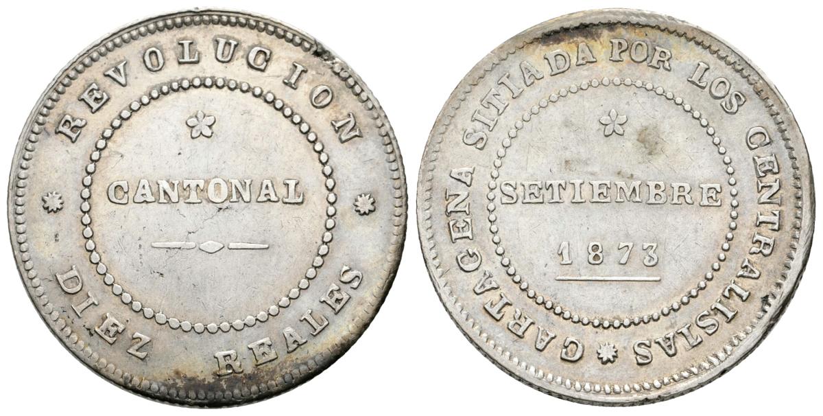 REVOLUCION CANTONAL. 10 Reales. 1873. Cartagena. Cal-7. Ar. 13,32g. Defecto en el canto. MBC+. Rara.