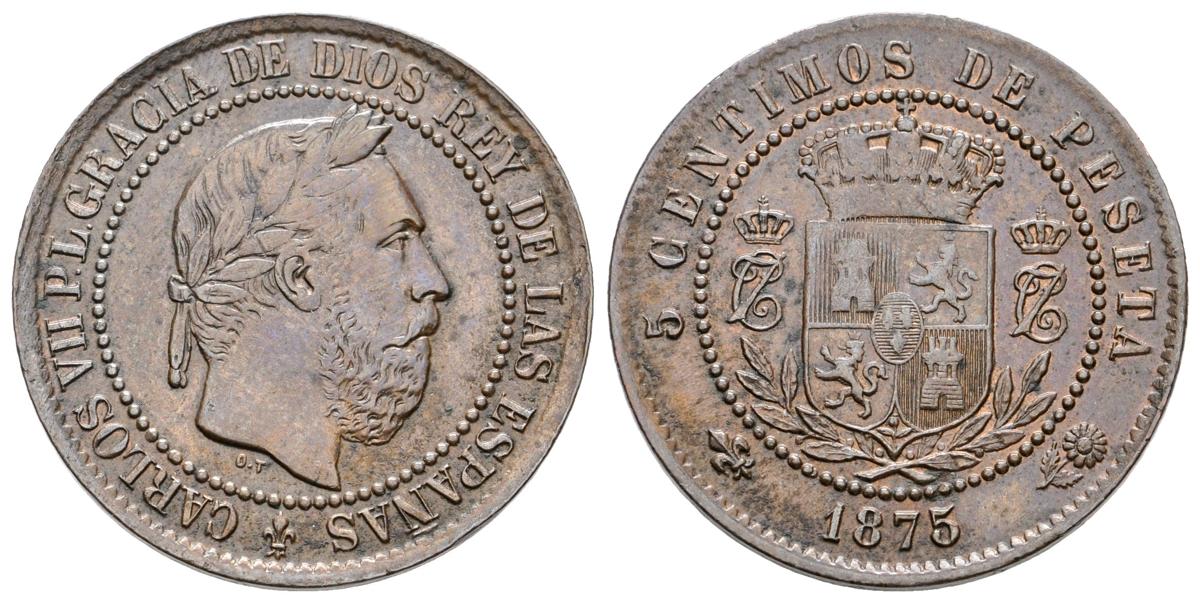 CARLOS VII. 5 Céntimos. 1875. Bruselas. Cal-10. Ae. 4,86g. MBC+.