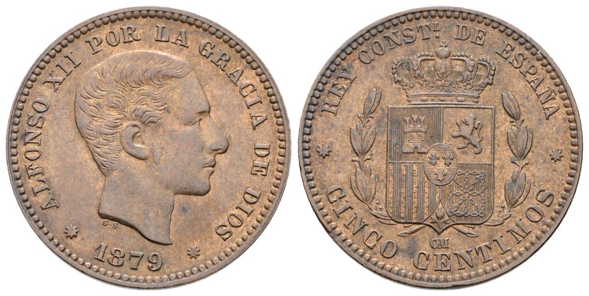ALFONSO XII. 5 Céntimos. 1879. Barcelona OM. Cal-73. Ae. 5,29g. EBC-.
