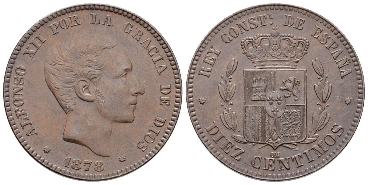 ALFONSO XII. 10 Céntimos. 1878. Barcelona OM. Cal-68. Ae. 9,88g. EBC.