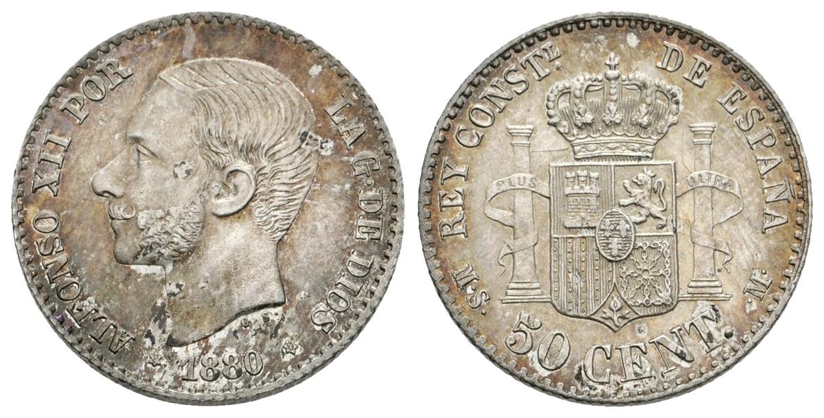 ALFONSO XII. 50 Céntimos. 1880. Madrid MSM. Cal-63. Ar. 2,51g. EBC.
