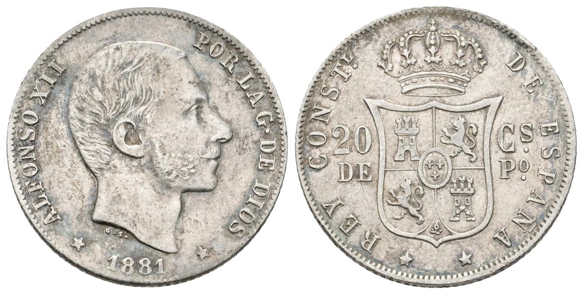 ALFONSO XII. 20 Centavos de Peso. 1881. Manila. Cal-88. Ar. 5,13g. MBC.