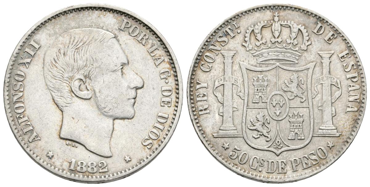 ALFONSO XII. 50 Centavos de Peso. 1882. Manila. Cal-82. Ar. 12,86g. MBC.