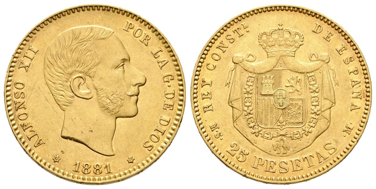 ALFONSO XII. 25 Pesetas. 1881. *18-81. Madrid MSM. Cal-14. Au. 8,04g. MBC+.