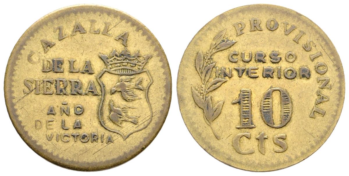 CAZALLA DE LA SIERRA. 10 Céntimos. Guerra Civil. Cal-5. Latón. 3,47g. MBC.