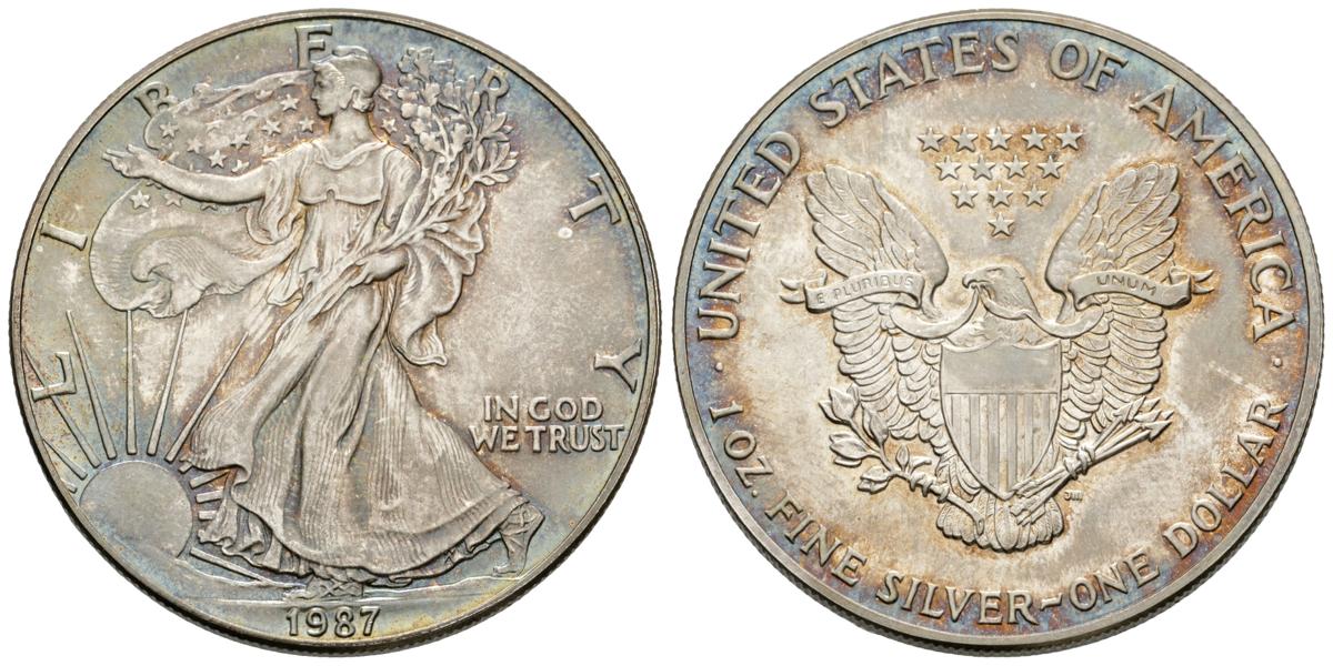 ESTADOS UNIDOS. Dollar. 1987. Km#273. Ar. 31,52g. Tono irisado. SC.