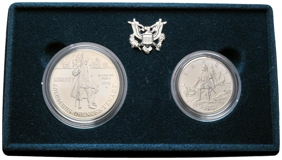 ESTADOS UNIDOS. Estuche oficial de 1 Dollar y 1/2 Dollar. 1992. Denver D. (500 años de la llegada de Colón). Ar. Proof.