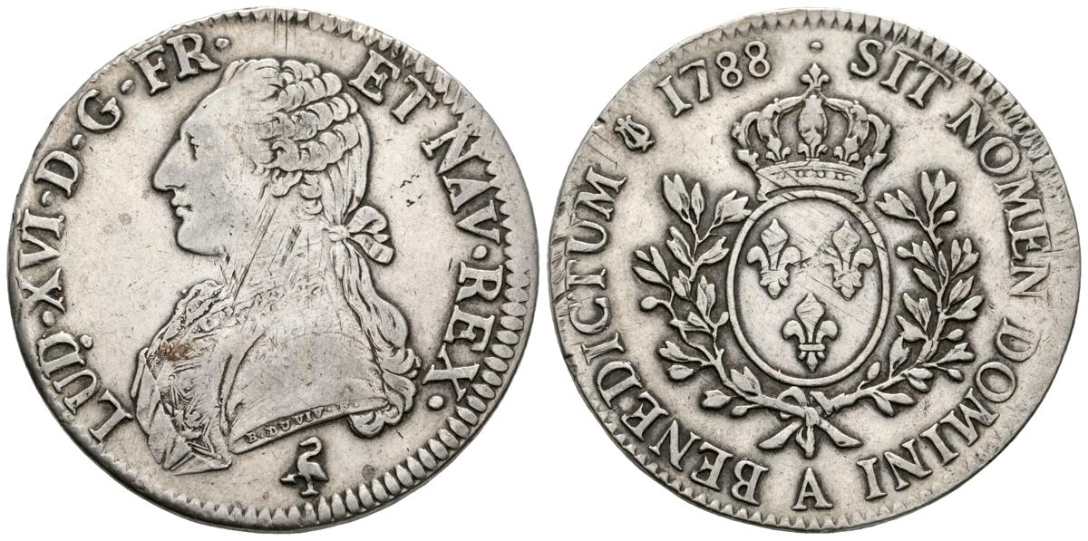 FRANCIA. Louis XVI. Ecu. 1788. Paris A. Km#1788. Ar. 29,10g. Rayas de ajuste. MBC+.