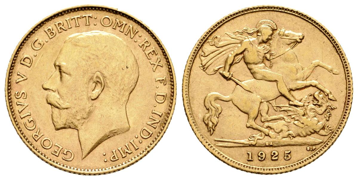 GRAN BRETAÑA. Jorge V. ½ Sovereign. 1925. Km#20. Au. 3,99g. MBC.