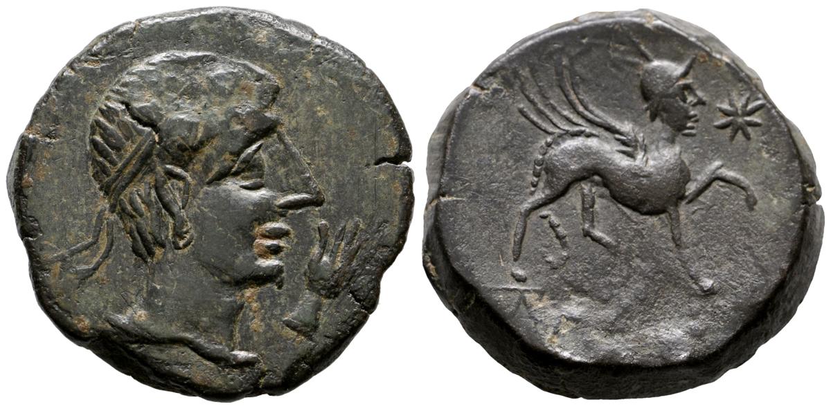 CASTULO. As. 180 a.C. Cazlona (Jaén) A/ Cabeza masculina diademada a derecha, delante mano. R/ Esfinge avanzando a derecha, debajo (KaSTiLO). Delante estrella. FAB-701. Ae. 14,57g. MBC-.